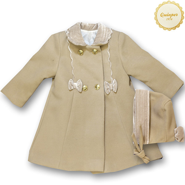 Quinper Camel Bow Coat with Bonnet